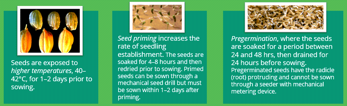 Many rice varieties have a dormancy period immediately after harvest. This usually lasts up to 1 month during which time germination levels are low and variable. A number of different
