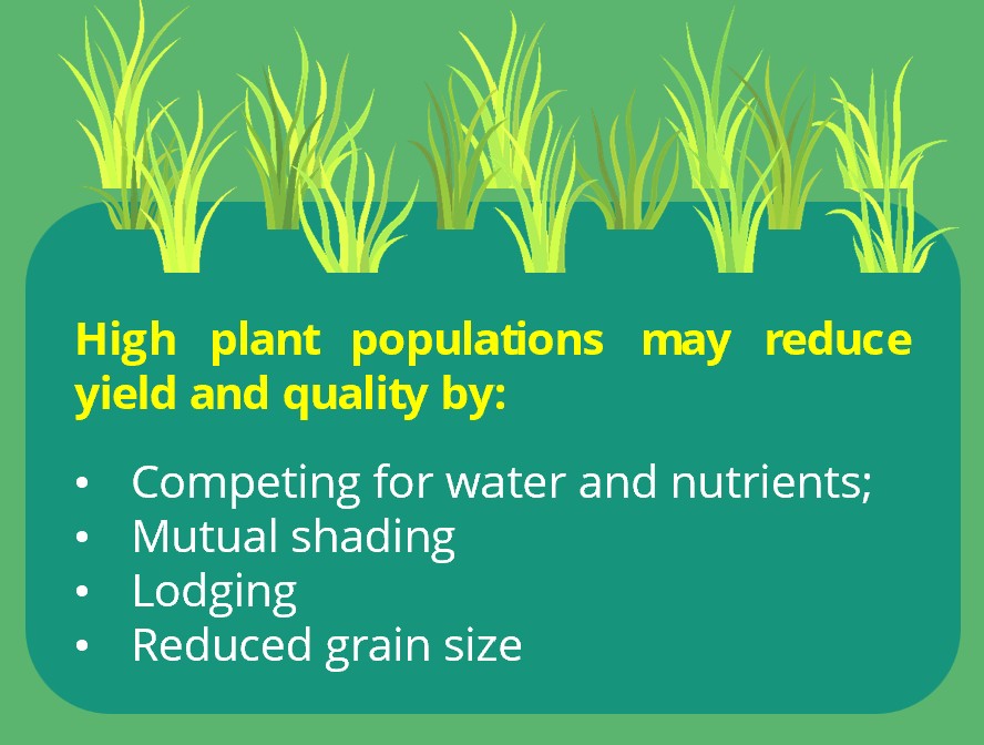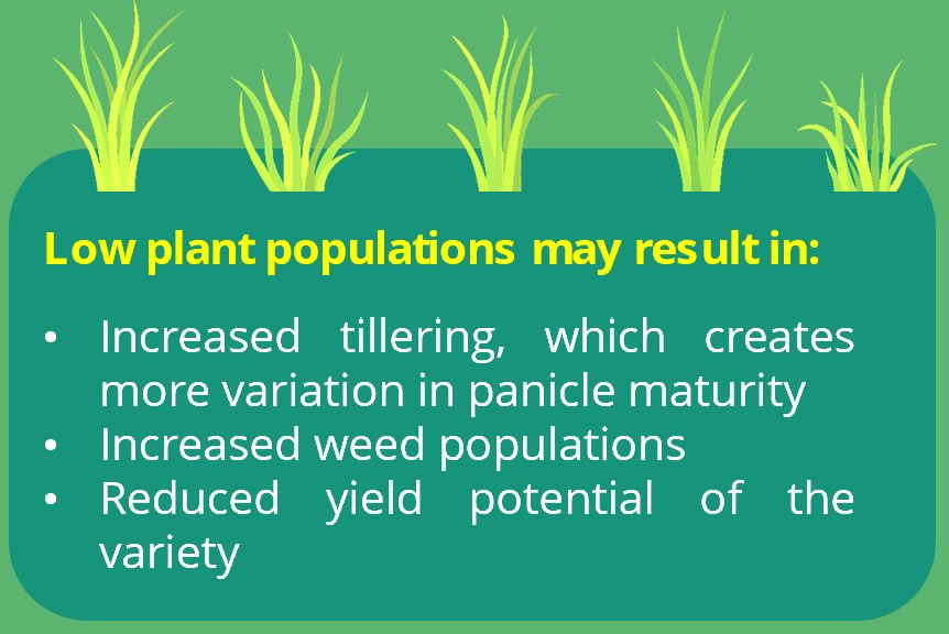 Establishing the correct number of plants is essential to maximize water and nutrient use. A target population that results in 400–500 panicles/m2 is desirable.