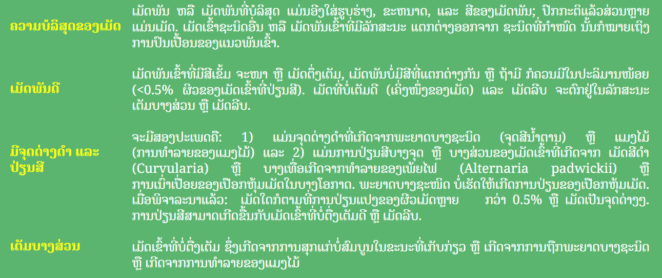ຄວາມໝາຍຂອງປັດໄຈດ້ານຄຸນະພາບຂອງເມັດພັນເຂົ້າ