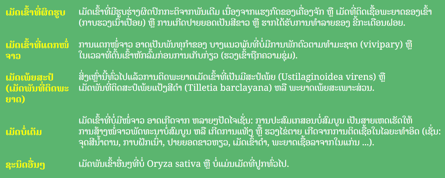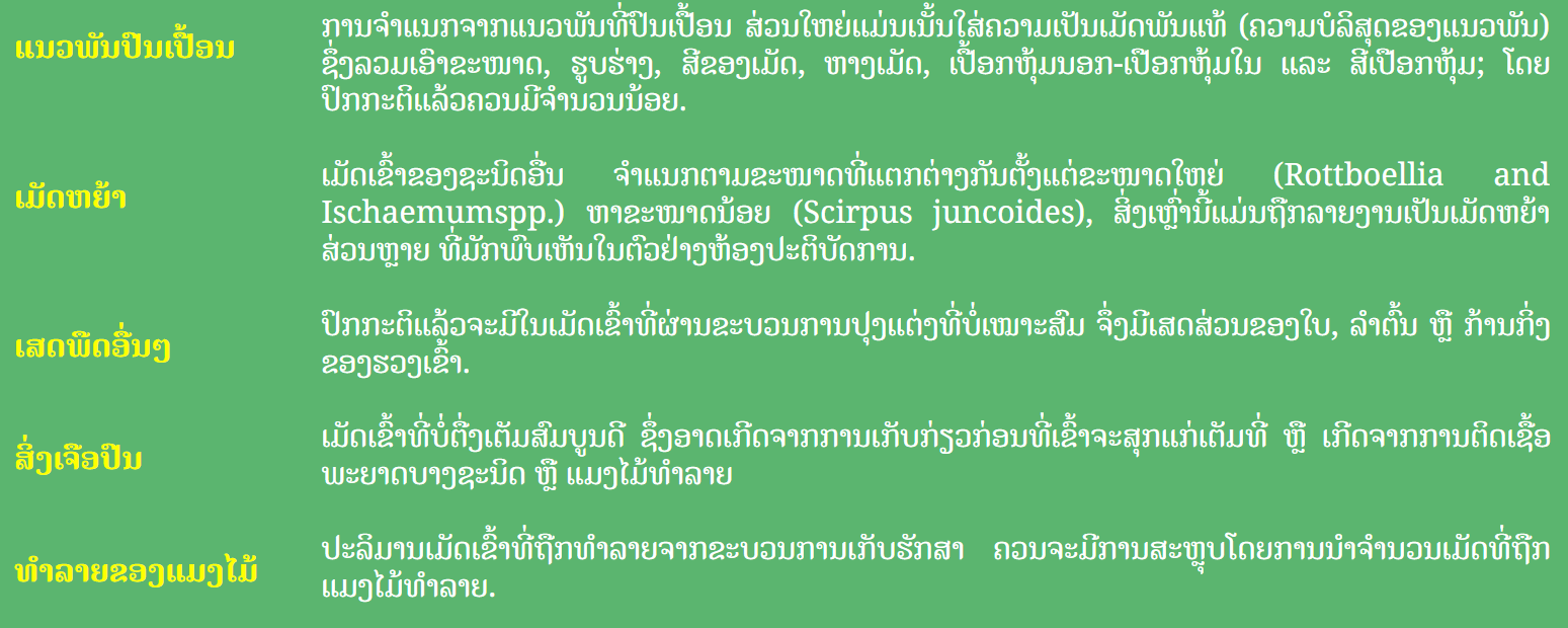 ຄຸນະພາບຂອງເມັດພັນ ເຂົ້າ