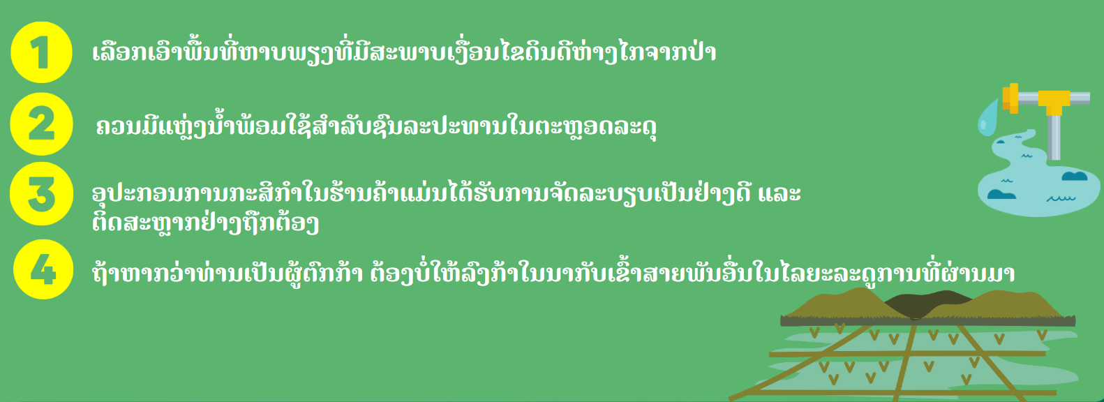 ຊາວກະສິກອນຄວນປະຕິບັດຕາມຫຼັກການຕໍ່ໄປນີ້ໃນການເລືອກສະຖານທີ່ກະສິກໍາທີ່ເຫມາະສົມ: