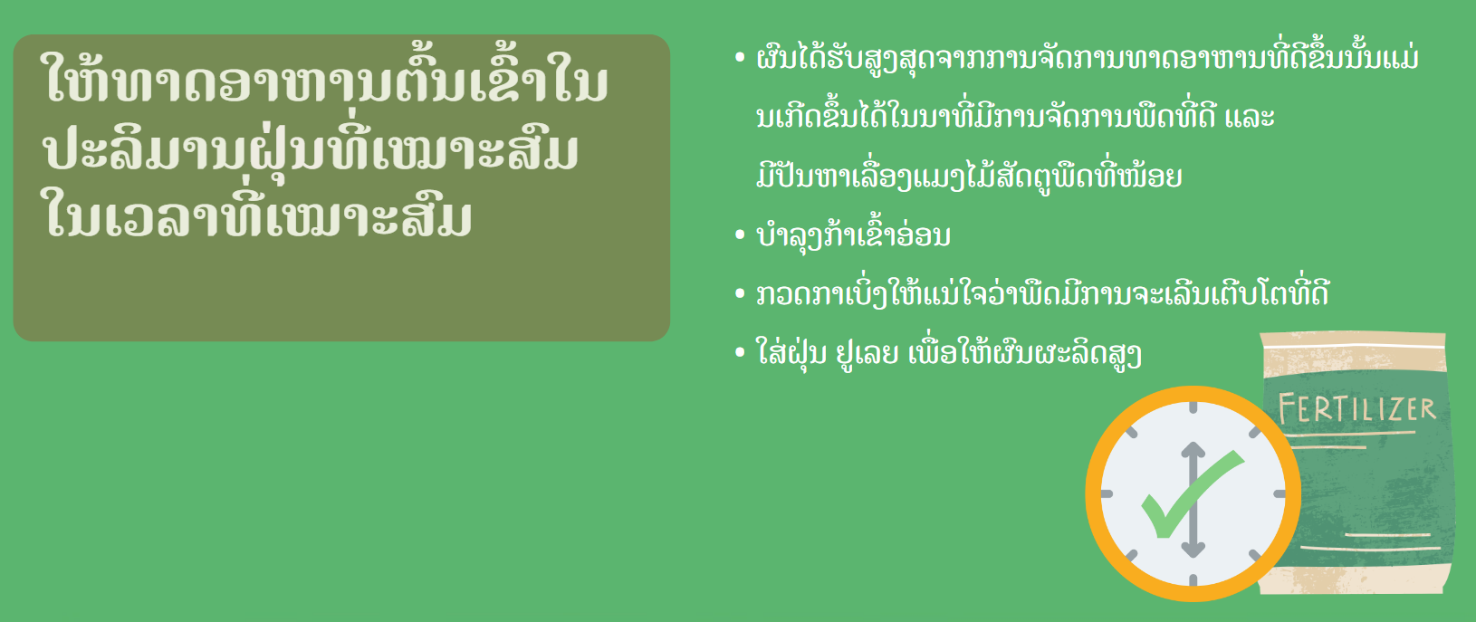 - ເພີ່ມການດູດຊຶມທາດອາຫານຂອງພືດຜ່ານວີທີການຈັດການການປູກພືດທີ່ດີ