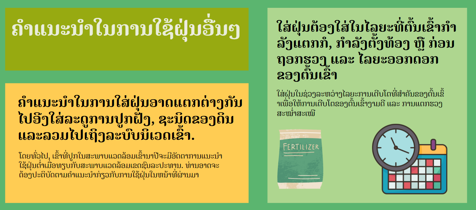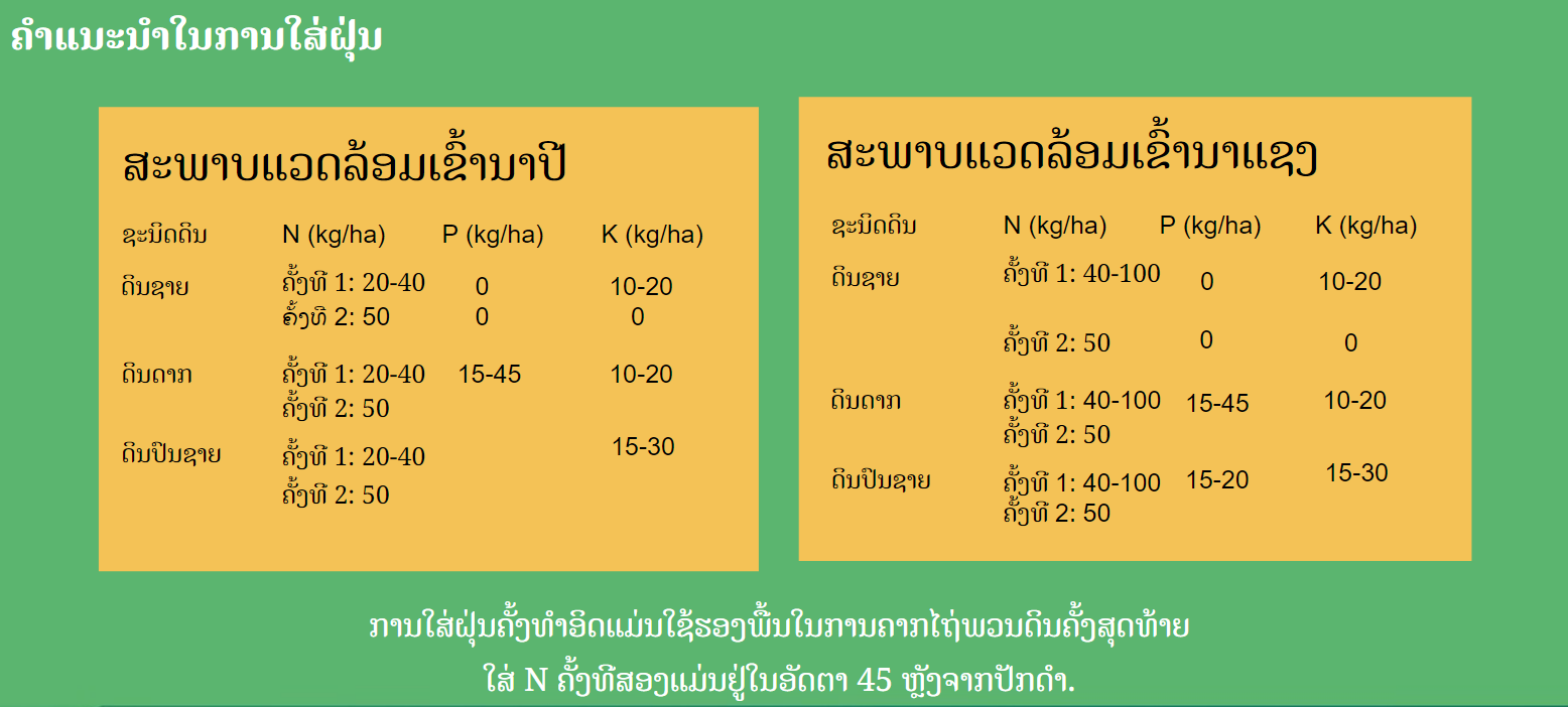 - ຮັກສາສົມດຸນດ້ານທາດອາຫານໂດຍເພີ່ມຝຸ່ນອົງຄະທາດ