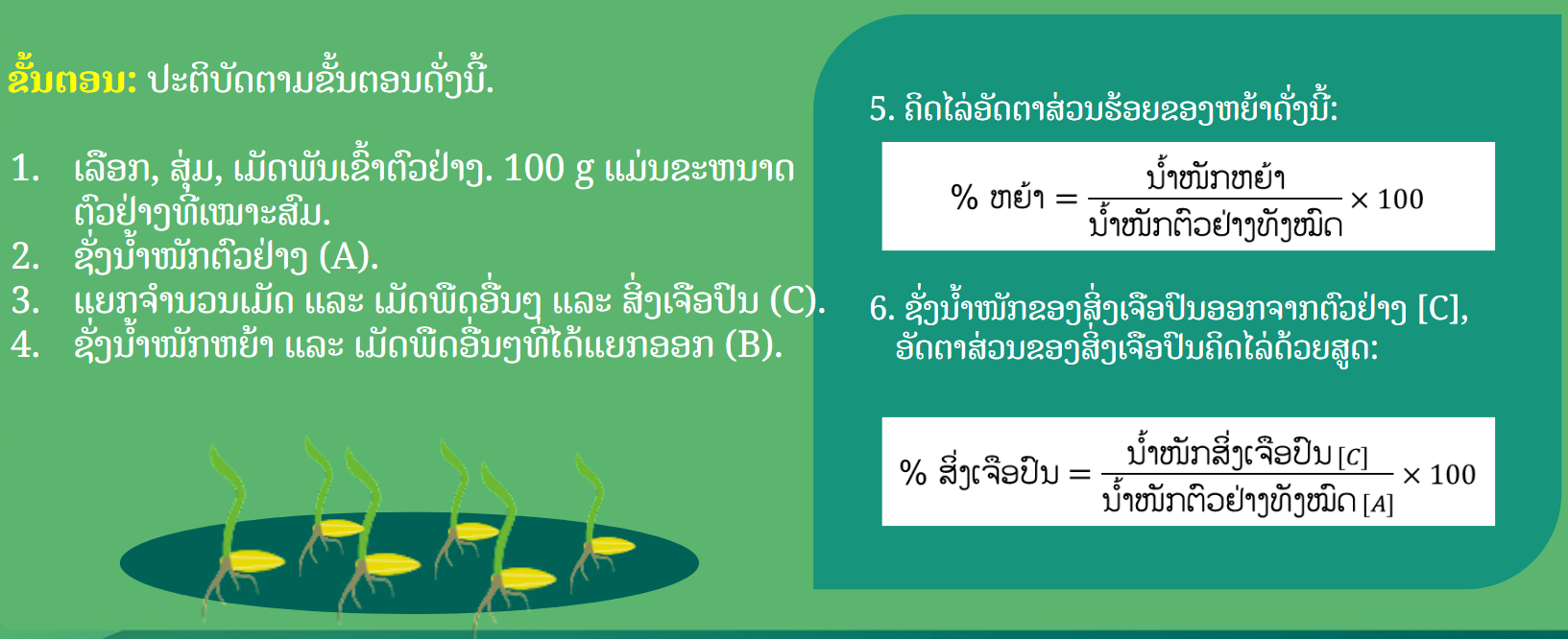 ຕົວຢ່າງຕາຕະລາງການລາຍງານຄຸນະພາບຂອງເມັດພັນເຂົ້່າ.