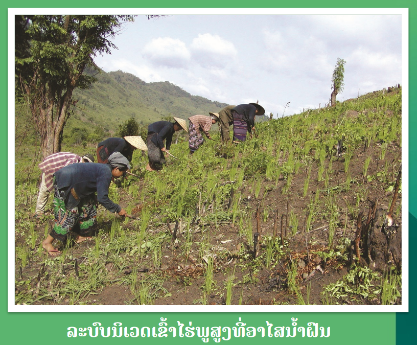 ລະບົບນິເວດເຂົ້າໄຮ່ພູສູງທີ່ອາໄສນ້ຳຝົນ ທີ່ປູກໃນເຂດພື້ນພູດອຍ (ພາຍໃຕ້ສະພາບແຫ້ງແລ້ງບໍ່ມີລະບົບຊົນລະປະທານ), ເມັດພັນຈະ ຖືກຫວ່ານ ຫຼື ບໍ່ກໍຊັກໃສ່ດິນແຫ້ງໆກ່ອນລະດູຝົນ. ໃນດິນຍັງເມັດພືດ ອື່ນໆຢູ່ລະຫວ່າງລະດູການການປູກຝັ່ງ, ໂດຍປົກກະຕິແລ້ວສຳລັບ ພືດຊະນິດໜຶ່ງທີ່ໃຫ້ຜົນຜະລິດຂ້ອນຂ້າງຕ່ຳ ແລະ ຫຼາຍໆປັດໄຈທີ່ຈຳ ກັດຜົນການຜະລິດປະກອບກັບໄພແຫ້ງແລ້ງ ແລະ ຫຍ້າອີກດ້ວຍ.