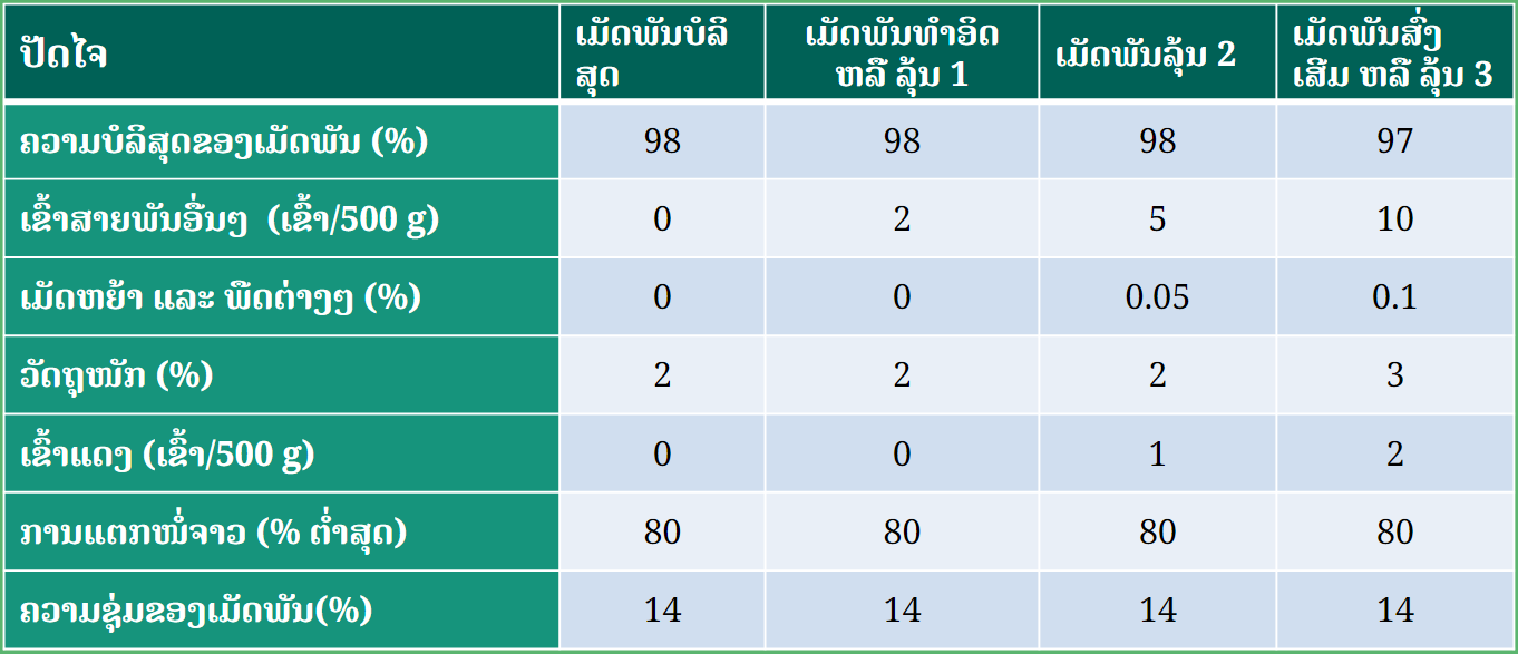 1. ປະເພດຂອງເມັດພັນເຂົ້າ