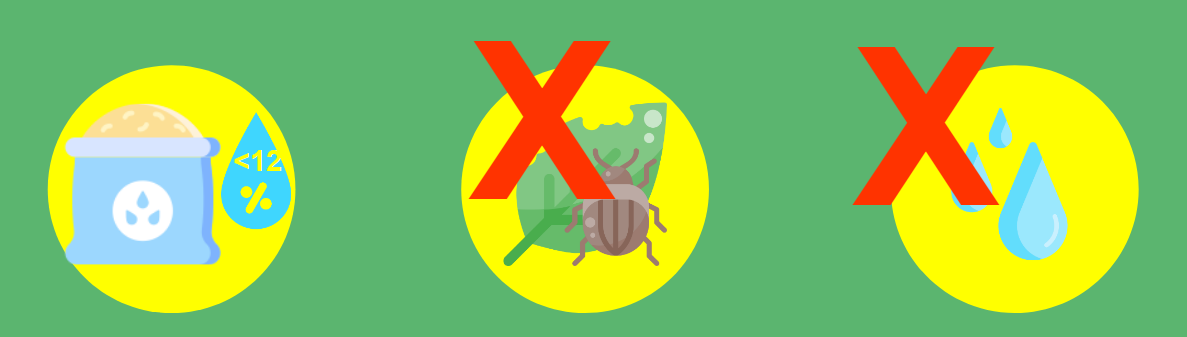 - ມີຄວາມຊື່ນຂອງເມັດຕ້ອງໜ້ອຍກວ່າ 12%