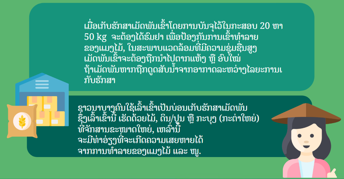 ຖ້າວ່າຈະເກັບຮັກສາເມັດພັນເຂົ້າໃຫ້ຢ່າງປອດໄພ ເປັນໄລຍະເວລາຫຼາຍກວ່າ 3 ເດືອນ ຈະຕອ້ງປະຕິບັດດັ່ງນີ້: