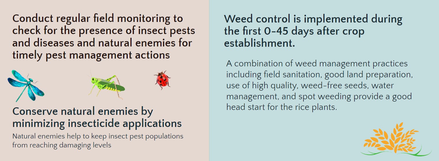 • Allow decomposition of weeds, rice stubbles, and straw in the field. The time needed to sufficiently decompose the weeds and crop residues is about three weeks
