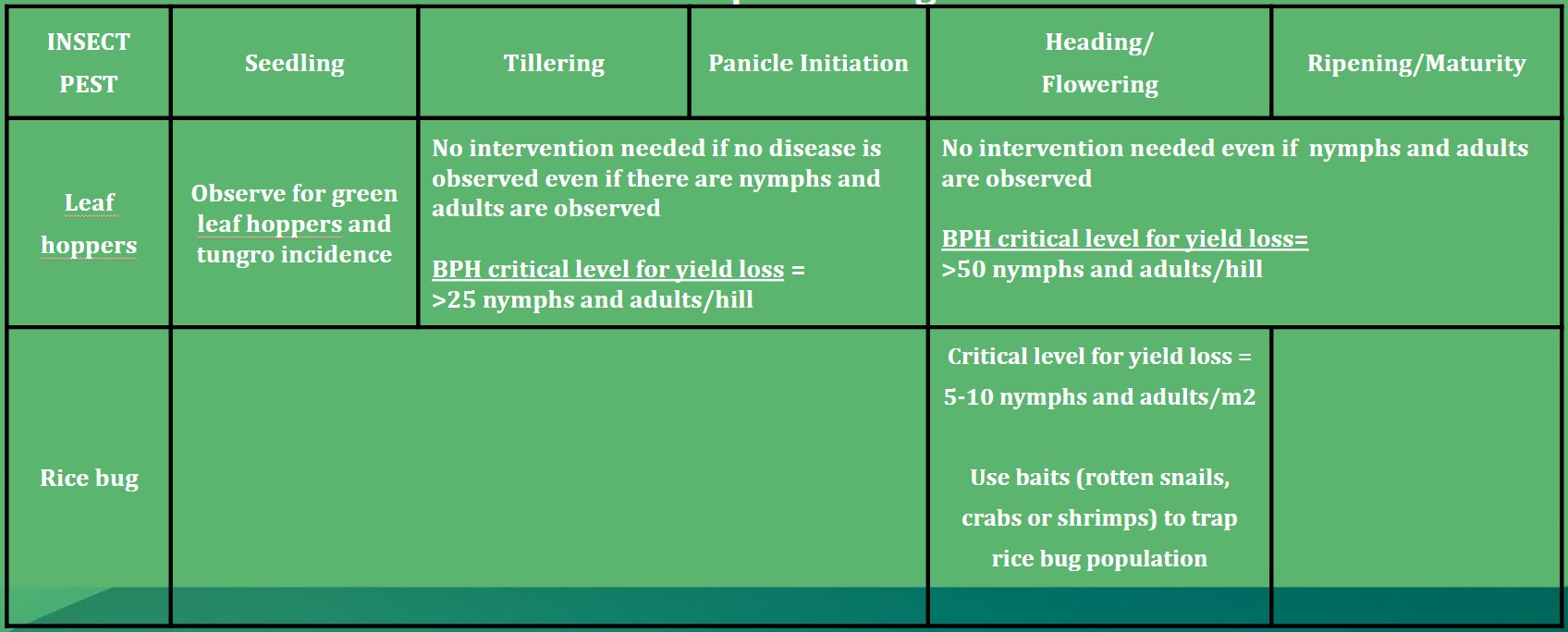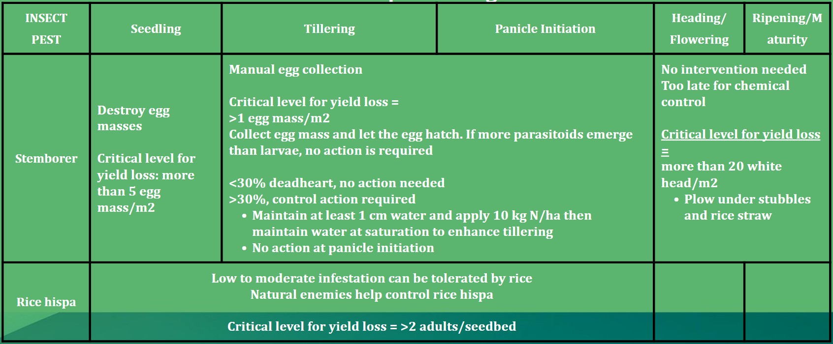 Major insect pests, critical levels, and management actions at each crop  development stage